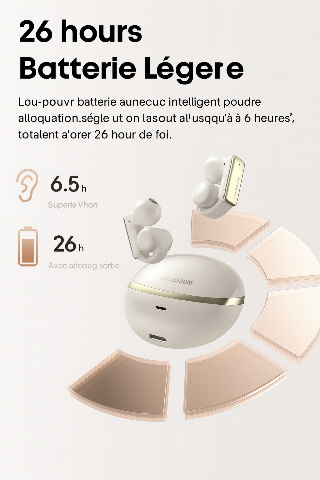 • ⚡ Autonomie prolongée : jusqu’à 26 heures d’écoute avec le boîtier de charge compact.